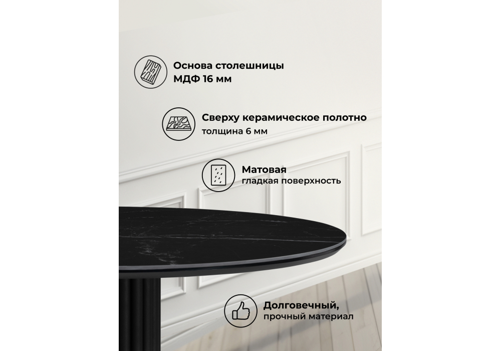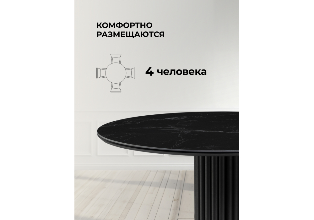 Керамический стол круглый Notta Кэмерон 90 черный мрамор shakespeare black / черный