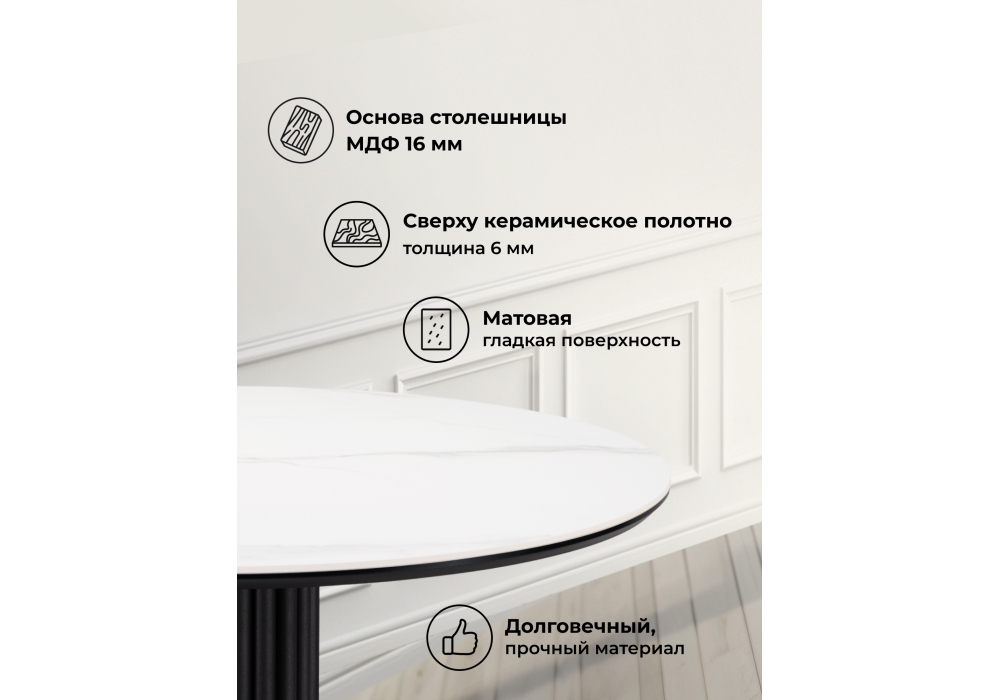 Керамический стол Notta Кэмерон 90 белый мрамор snow white / черный