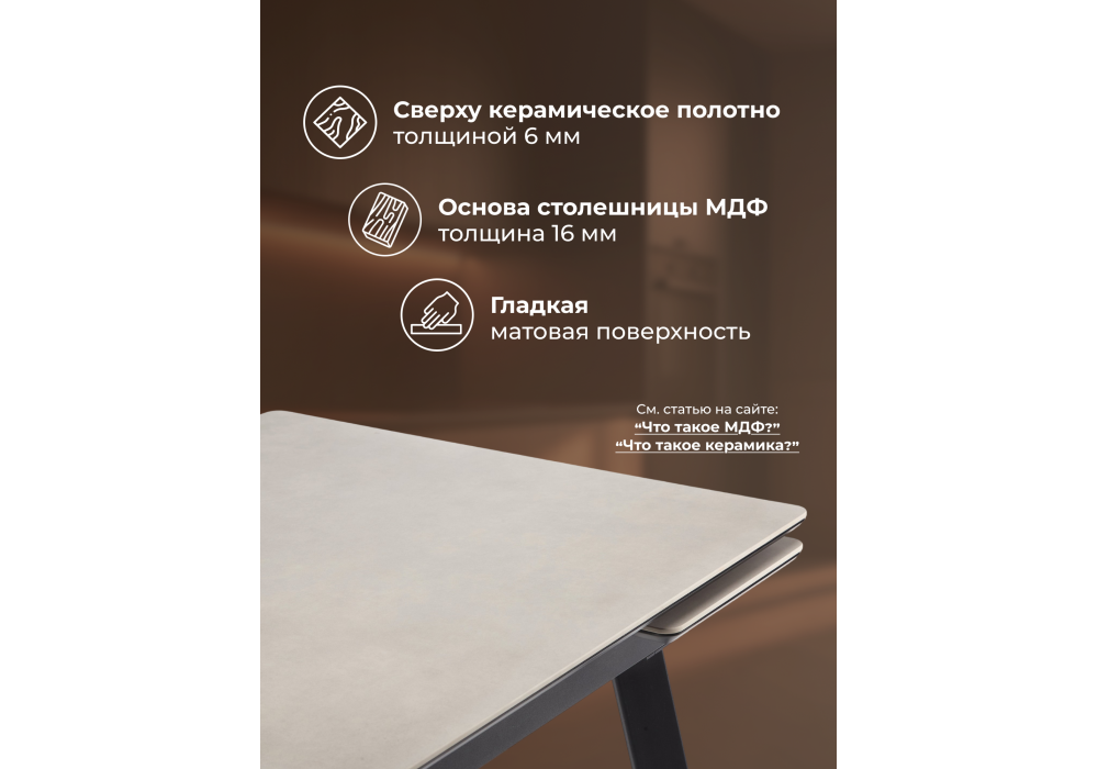 Керамический стол Notta Норман 120(180) carmen light grey / черный