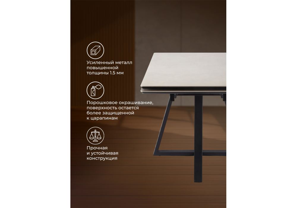 Керамический стол Notta Памелла 120(180) carmen light grey / черный