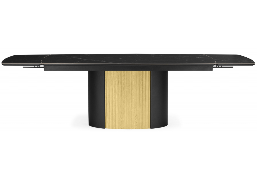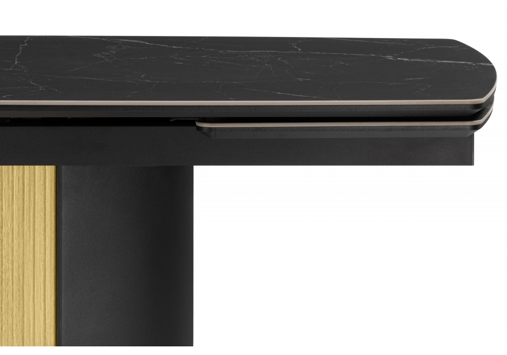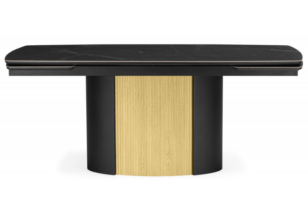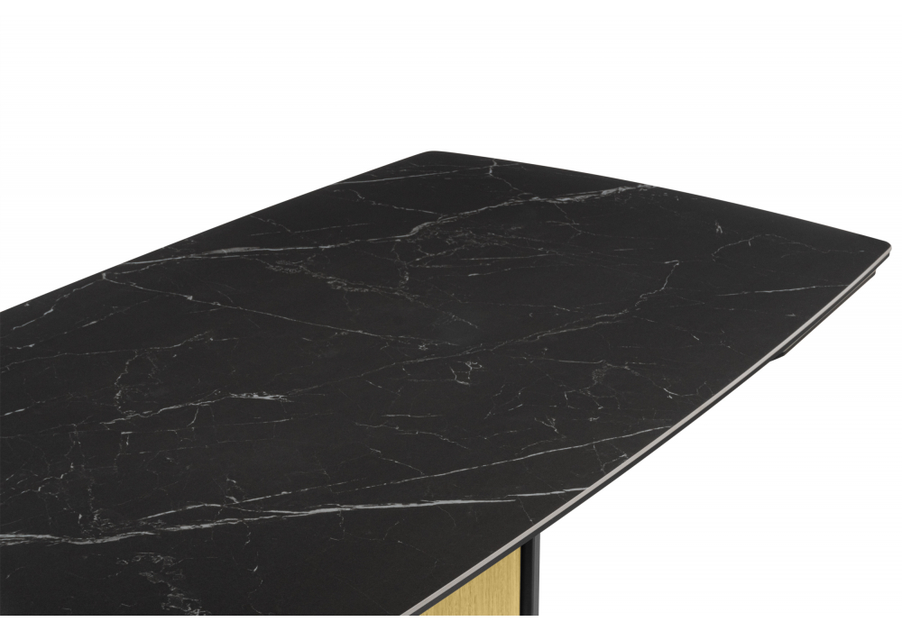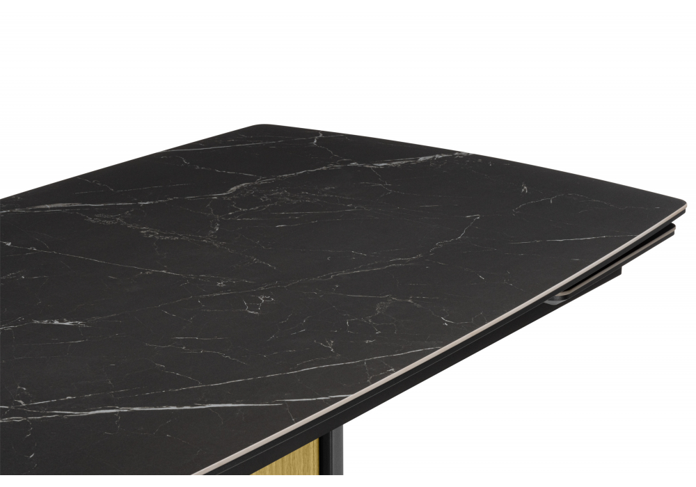 Керамический стол Woodville Бовер 180(220) черный мрамор / дуб натуральный