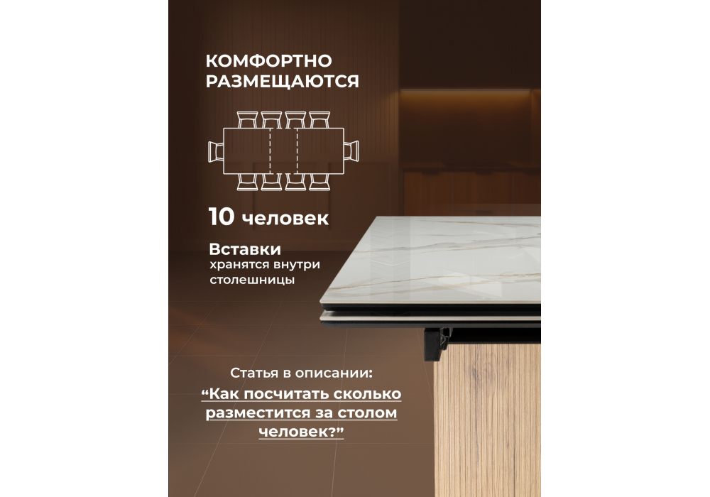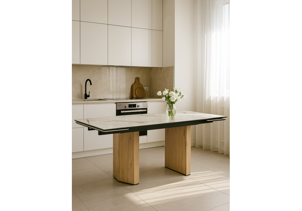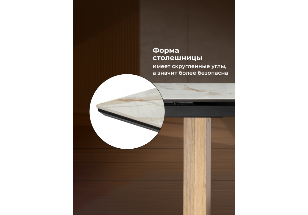 Керамический стол Woodville Монерон 180(240) calacatta gold / дуб монтана