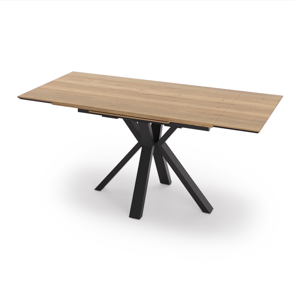 Обеденный стол FORMA LUX Axel 120 с раскладной столешницей с ламинацией цвета светлый дуб — это воплощение современного дизайна и функциональности, идеально подходящее для вашего интерьера. Этот стол привлекает внимание своими оригинальными X-образными опорами, которые не только придают ему уникальный стиль, но и обеспечивают надежную устойчивость.