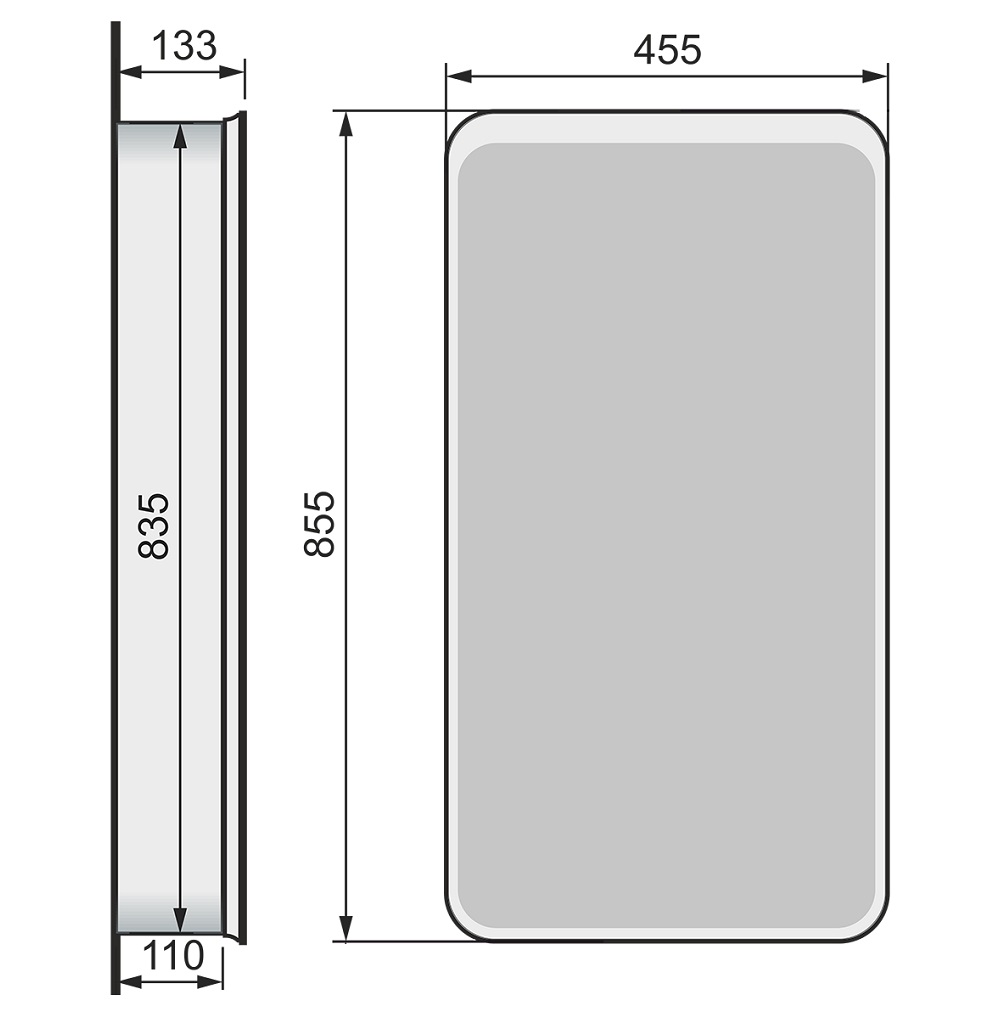 Зеркальный шкаф Raval Pure 46 отлично впишется в интерьер современной ванной комнаты.