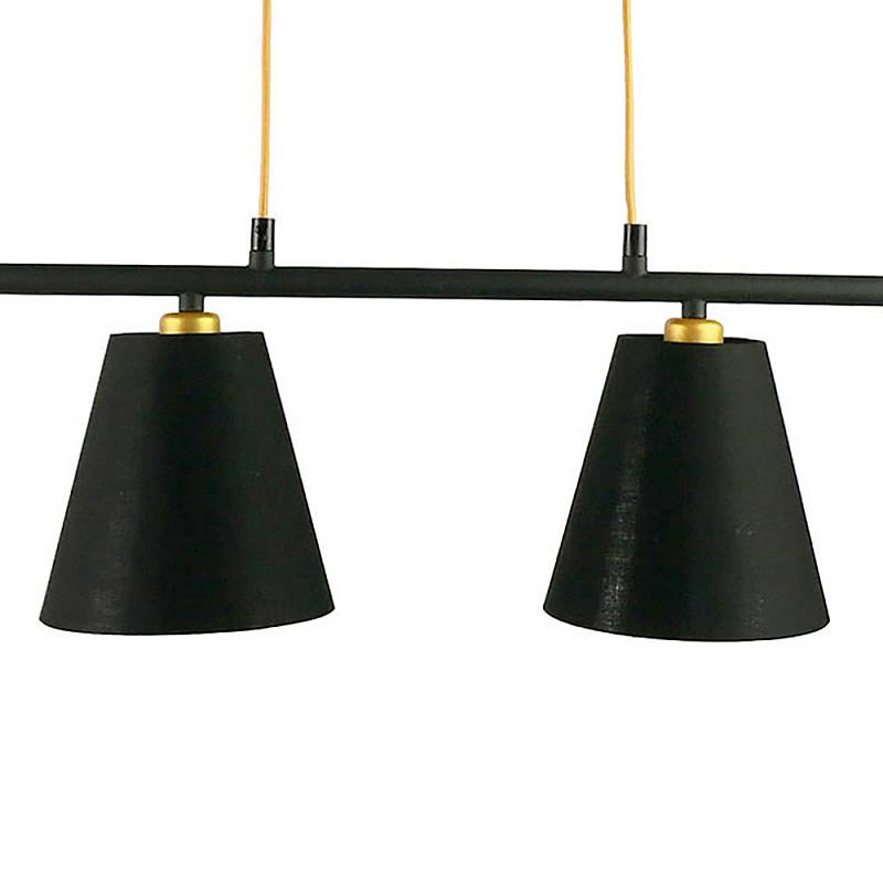 - четыре конусных плафона из черной ткани слегка просвечивается при включении, что позволяет создать уютную атмосферу;